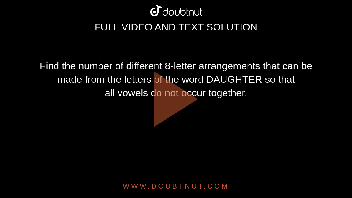 Find The Number Of Different 8 Letter Arrangements That Can Be Made From The Letters Of The Word Daughter So That I All Vowels Occur Together Ii All Vowels Do Not Occur Together